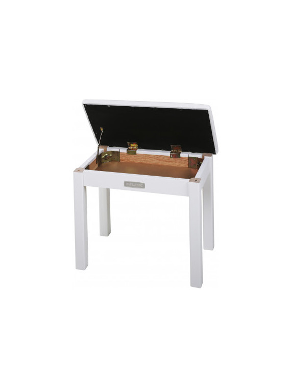 Profitez également du rangement sous l'assise pour y disposer vos partitions ou autre documents.- Catégorie : banquette piano- Coloris assise : blanc- Couleur : Blanc- Dimensions (mm) : 570 x 360- Poids : 6 kg- Revêtement assise : simili cuir- Specs complémentaires :- Matériau : bois- Pliable : non- Réglable en hauteur : non