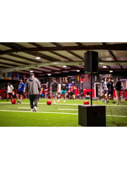 Les entrées audio symétriques sont disponibles sur des borniers à 3 broches et chaque sortie pour les HP à haute fréquence comporte deux connecteurs. Cela autorise une connexion de 2 haut-parleurs (8 ohms) ou, en parallèle, jusqu'à 4 (16 ohms). Un support de montage mural inclus offre des possibilités de montage pratiques sur n'importe quel mur, tandis qu’une fixation au plafond est possible grâce à des accessoires disponibles en option. Une télécommande optionnelle en 2,4 GHz permet le contrôle à distance des fonctionnalités de base de NOBA, même s’il n’est pas visible.