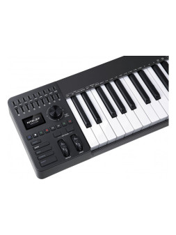 Spécifications- Affichage : LED- Aftertouch : Oui- Arpégiateur : Oui- Bluetooth : Non- Bluetooth Midi : Non- Catégorie : Clavier maître- Compatibilité : Mac OS 10.13 et supérieur, iOS, Windows 10 64-bit ou supérieur- Couleur : Noir- Dimensions (mm) : 873x278x74- Entrées : Pédale d'expression, Pédale de sustain, Auxiliaire, USB Midi- Format des touches : grande- Logiciels fournis : Ableton Live Lite, Analog Lab Pro- Nombre de faders : 9- Nombre de pads : 12- Nombre de potentiomètres : 9- Nombre de switches : 32- Nombre de touches : 61- Pad rétroéclairé : Oui- Poids (kg) : 6,80 kg- Sensible à la vélocité : Oui- Séquenceur : Non- Sorties : Midi, USB-C- Toucher : Dynamique avec aftertouch- Transposition : Oui- Zones splittables : 1- Specs complémentaires :- Clavier semi-lesté compatible avec la vélocité et l'Aftertouch, doté d'une réactivité et d'une jouabilité exceptionnelles.- 9 potentiomètres et faders sensitifs à 360°. 12 pads sensibles à la vélocité et à la pression avec 4 banques.- Commandes de transport et commandes DAW (sauvegarder, annuler, refaire, etc.).- Écran couleur 3,5" 320x480px avec 8 boutons contextuels pour un contrôle et un retour d'information intuitifs.- Entrées pour pédales de sustain, d'expression et auxiliaires. Entrée/sortie DIN MIDI pour des options de connectivité polyvalentes. Alimentation USB-C, assurant la compatibilité avec les configurations modernes.- Mode Scale : ajuste automatiquement les notes sur une gamme sélectionnée.- Arpégiateur avec fonctions aléatoires étendues pour des motifs uniques.- Jeu d'accords : permet des accords fixes ou des progressions d'accords avec un voicing intelligent.- Intégration avancée avec Ableton Live, FL Studio, Logic Pro, Cubase et Bitwig Studio avec des mappings MIDI dédiés plus MCU & HUI.- Intégration plus poussée avec le logiciel Arturia, offrant un contrôle et une flexibilité inégalés.- Un ensemble complet de logiciels.- Construction robuste et fiable conçue pour une utilisation intensive.- Un emballage écologique.