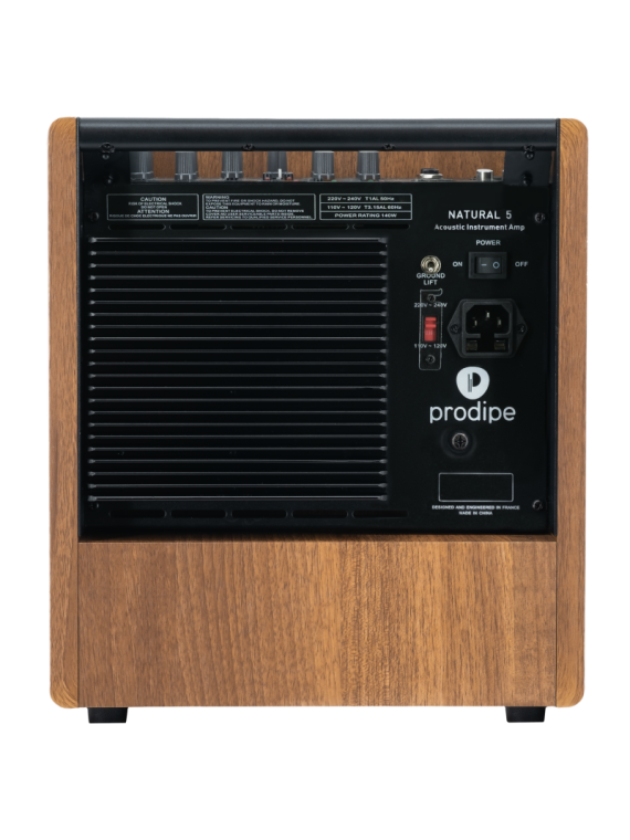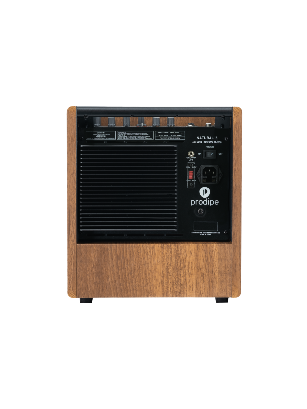 Prodipe COMBO pour guitares et instruments acoustiquesEnceinte Électro-Acoustique ActiveSonorité Couleur Caractère "Une restitution exemplaire"Natural 5 v2 Walnut WoodRéalisé en bois lamellé pour une meilleure dynamique, facile et léger à transporter, destiné à tous les instrumentistes acoustiques et les voix, le Natural 5 V2 Walnut Wood amplifiera votre guitare, votre instrument à cordes ou votre voix avec une qualité de son d'une remarquable précision. Le respect de la couleur et du caractère de l’instrument amplifiéImaginez une guitare qui sonnerait sur votre ampli, de la même façon qu'au naturel ! Depuis toujours nous recherchons l'excellence grâce à un travail acharné en poursuivant toujours le même objectif : celui d'obtenir un son rare, extrêmement précis et neutre.Avec sa large bande passante de 55Hz à 20kHz, équipé d’une forte bi-amplification de 90 Watts, d'un tweeter à dôme d'un pouce en néodymium et d'un woofer de 5 pouces en fibre de verre, le Natural5 v2 Walnut Wood répond à toutes nos exigences.Une table de mixage intégrée à la connectique très complèteLe Natural 5 V2 Walnut Wood dispose d’une table de mixage intégrée très complète :- 2 x entrées et 2 x sorties symétriques,- 2 x entrées asymétriques,- 2 x équaliseurs 3 bandes,- 1 x alimentation fantôme,- 1 x réverbe DSP numérique,- 1 x anti feed back,- 1 x ground lift.Connectez vos guitares, vos instruments acoustiques, vos micros dynamiques et statiques (+48V) ainsi qu'une source stéréo en entrée/sortie.Grâce à notre technologie "Monitoring" intégrée, offrant une très large bande passante, vous pourrez aisément connecter : ordinateur, clavier, synthétiseur, boite à rythmes, batterie électronique, téléphone... Aller vers un autre ampli, ou tout simplement une carte son.Pieds dépliables pour une utilisation en position "Retour", ainsi qu'une embase pour pied d'enceinte.La "recherche et développement" a été réalisée en France en collaboration active avec l'incontournable ingénieur du son français Ludovic Lanen"Depuis plus de 30 ans, je fais d'abord confiance à mes oreilles plutôt qu'à un tarif car seule la qualité est mon combat !"SPÉCIFICATIONS :Finition : Walnut WoodAmplification : Totale : 90W RMSAigu : 25W RMS (50W crêtes)Grave : 65W RMS (110W crêtes)Fréquence de coupure : 2.6kHzTweeter : Dôme en néodymium 1“ (25mm)Woofer : Membrane en fibre de verre 5” (13cm)Poids : 11kgNiveau SPL (max) : 106dBFiltre subsonic : 55HzEntrées : 1 XLR/Jack1 Jack1 RCA stéréoSorties : 1 XLR1 RCA stéréoImpédance des entrées/sorties : XLR : 1.5k?Jack : 1M?RCA : 22?Correction de l'équaliseur : Aigu : 12kHz (±15dB)Medium : 2.5kHz (±15dB)Grave : 80Hz (±15dB)Effet DSP : ReverbeAnti feedback : OuiGround lift : OuiAlimentation fantôme : +48VDimensions (H x L x P) : 320mm x 285mm x 270mmForme : CubiqueEmbase pour pied d'enceinteBande passante : 55Hz à 20KHzRapport signal/bruit : 90dBUtilisation : Backline (scène)Chant / VoixPercussionsCordesVents