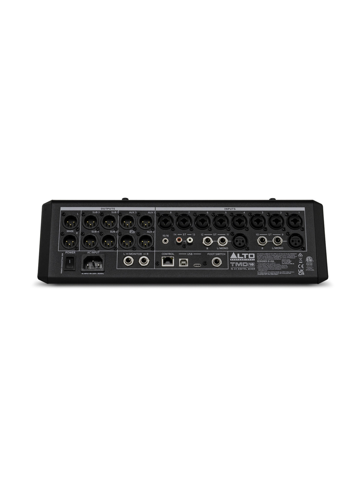 La TMD16 est une console de mixage numérique au format compacte à 16 canaux de mixage, alliant des performances professionnelles à une ergonomie bien pensée. Conçue pour les musiciens, techniciens, espaces de répétition, studios et salles de spectacle, la TMD16 offre une expérience de mixage fluide, précise et agréable grâce à son interface claire et efficace, mettant l'accent sur la simplicité de prise en main et l'accès rapide aux paramètres critiques de votre mixage.