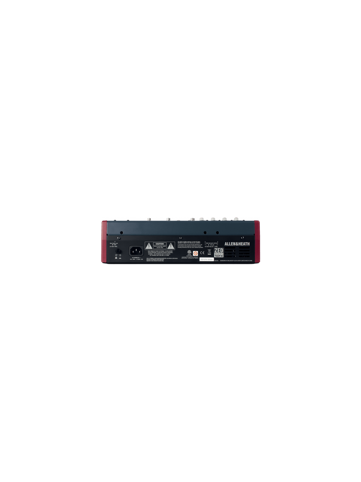 - Affichage : LED- Alimentation fantôme : Oui- Catégorie : table analogique- Course fader : 60 mm- Dimensions (mm) : 336 x 346 x 50- EQ : 3-bandes avec mid semi-param et 3-bandes selon tranche- Effets intégrés : Oui- Enregistrement : USB- Entrées (autres) : USB- Entrées ligne : 2 x jack stéréo, 4 x jack, playback 2 x jack stéréo- Entrées micro : 4 x XLR- Filtres : Coupe-bas- Insert : Oui- Mode PFL/AFL : Oui- Nombre canaux : 10- Nombre de faders : 9- Nombre départs auxiliaires : 2- Nombre préamplis micro : 4- Poids : 4,50 kg- Rackable : Oui- Sorties (autres) : USB, auxiliaire jack, casque jack stéréo, casque minijack stéréo, enregistrement Rca- Sorties principales : 2 x XLR- Specs complémentaires :- ZED-10FX avec faders- 4 entrées micro / ligne dont 2 avec entrées haute impédance D.I. guitare- 2 auxiliaires : 1 pre-fader avec réglage volume master et sortie jack, 1 post-fader dédié effet avec sortie physique- Sélection de 16 effets de délai et écho- Réglage du pan- Indicateur PFL- Vumètre 12 crans- Mise en rack possible (Z60-10FX-RK19)