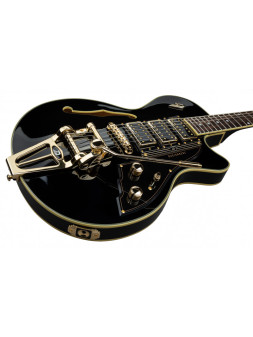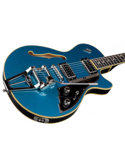 Duesenberg Starplayer TV DUO-TONE CATALINA RED & WHITEMancheType: Collé, érable 1 pièceLargeur: 42.5 mm (sillet), 52 mm / (12ème frette)Épaisseur: 21 mm / (1ère frette), 24 mm / (12ème frette)Profil du manche: Medium DTouche: Palissandre, radius 305 mm / 12"Repères: Points crèmeFrettes: 22 Jumbo 2.8 x 1.0 mmDiapason: 648 mm / 25.5"Tige de réglage: Acier double actionCouleur tête: NoireCorpsType: Semi-hollow avec poutre centraleTable: Épicéa laminéDos, éclisses: Épicéa flamméDimensions: 46 x 34 cmHauteur (éclisses): 4.5 cmFilets: 5 plis crèmePlaque de protection: BlackFinition: Vernis polyuréthaneAccastillageMécaniques: Duesenberg Z-TunersChevalet: Duesenberg chevalet avec pontets en acierVibrato: Duesenberg Diamond Deluxe TremoloAttache courroie: Duesenberg Standard (Straplock compatible)Accastillage finition: NickelCordes: Duesenberg Custom 10/50 (010-013-017-028-042-050)ÉlectroniqueMicro (manche): Duesenberg Domino P90Micro (chevalet): Duesenberg Grand Vintage HumbuckerCâblage : 1 Volume, 1 Tonalité, sélecteur 3 positionsAccessoiresHousse: Duesenberg Custom Line CaseOutils: Clés Allen fournies