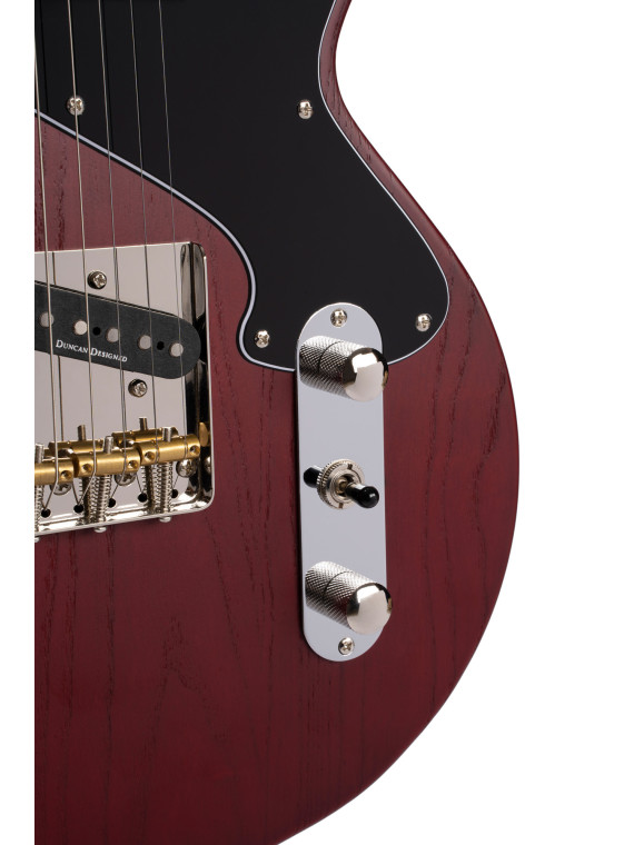 L'épaisseur de corps réduite (45 mm) offre un meilleur confort dans n'importe quel contexte.SUNSET TC, corps frêne, manche érable, touche jatoba, 22 frettes, 2 micros CORT Voiced Tone VT90 & TE-103B, accastillage nickelé, cordes D'Addario EXL 120.