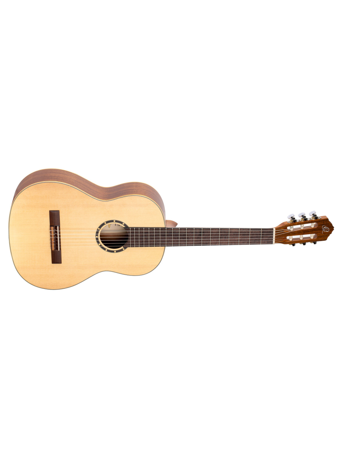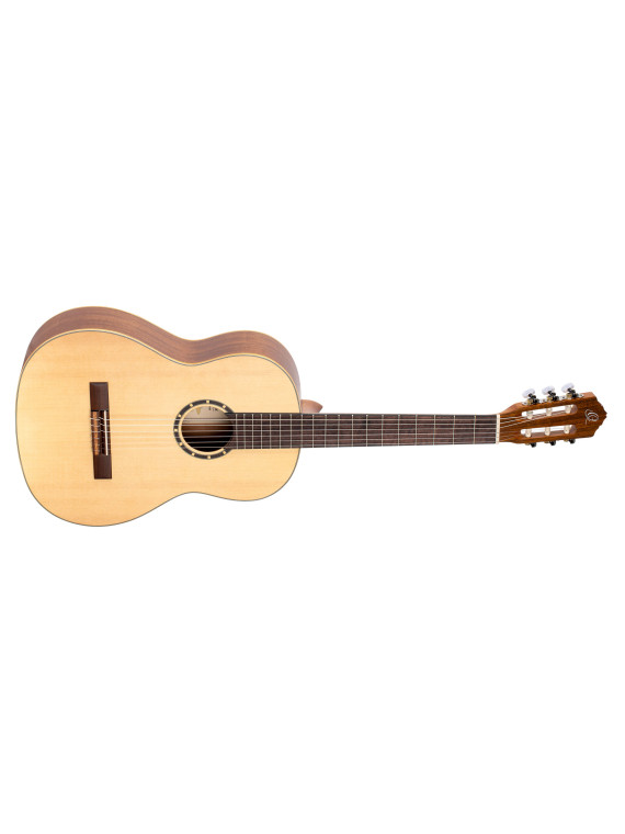 Guitare -Classique ORTEGA R121R121, table épicéa, fond & éclisses acajou, manche acajou (repères cases 3/5/7/9/12), sillet 52 mm, touche & chevalet sonokeling, chevalet 12 trous, truss rod double action, cordes D'Addario, housse deluxe rembourrée.
