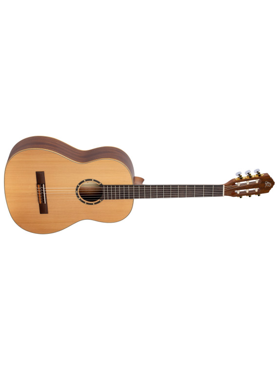 Ortega R131 Cèdre Massif naturel satinéR131SN, modèle Slim Neck, table cèdre rouge canadien massif, fond & éclisses acajou, manche acajou (sillet 48 mm), touche & chevalet sonokelin, chevalet 12 trous, truss rod double action, cordes D'Addario, housse deluxe rembourrée.