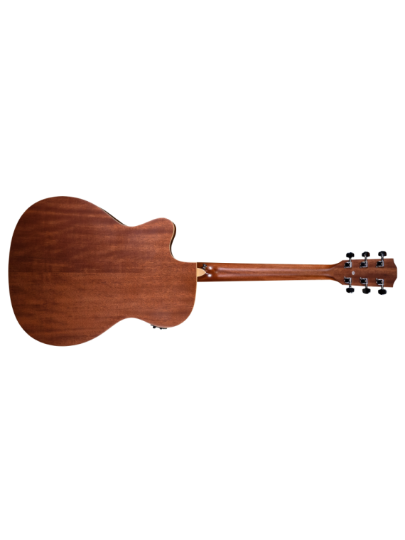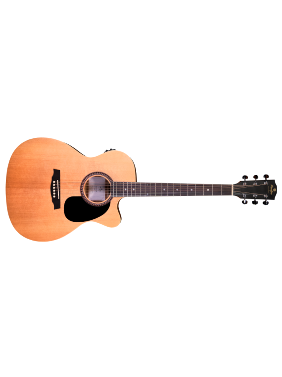 Table en épicéa, fond et éclisses en acajou indonésien pour l'obtention d'un son clair ainsi que de belles basses profondes et bien définies.