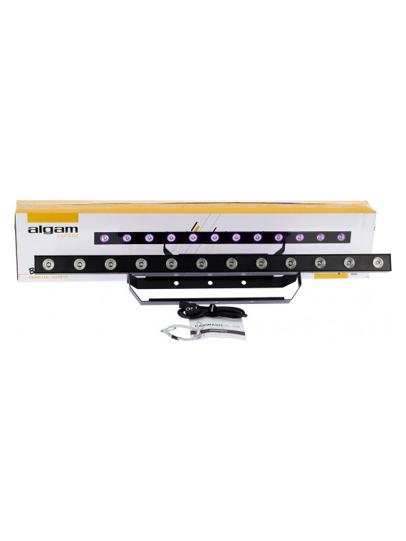 La Barwash 36 UV d’Algam Lighting est une barre LED professionnelle de 1 mètre, dédiée exclusivement à l’éclairage ultraviolet. Équipée de 12 LED UV de 3 W (36 W au total) et d’un angle de faisceau de 40°, elle délivre un lavage uniforme idéal pour révéler peintures, textiles et maquillages fluorescents. Légère (2,8 kg), robuste et compacte (1000 × 51 × 157 mm), elle s’intègre facilement dans toutes les configurations scéniques ou événementielles. Son contrôle simplifié via DMX-512 (1 canal) ou en mode manuel assure une mise en œuvre rapide et une compatibilité avec la majorité des installations.