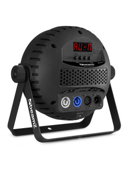 - Type d'usage : Soirée, Evènement, Scène- Specs complémentaires :- Sources lumineuses : 14 LED de 15W 4-en-1 RGB-WW- Angle de faisceau : 35°- Modes : Auto, Musical, Maître/Esclave et DMX- Nombre de canaux DMX : 4 ou 8- Entrée/sortie DMX : XLR 3 points- Affichage : écran numérique avec 4 boutons de commande- Connecteurs d'alimentation : PowerCon verrouillable- Tension d'alimentation : 90-240V 50/60 Hz- Consommation électrique : 200W- Refroidissement : actif- Indice de protection : IP20 (usage en intérieur)- Livré avec câble d’alimentation et velcro attache-câble, double lyre d’accroche et élingue de sécurité- Poids et dimensions : 2,20 kg, 220 x 220 x 140 mm