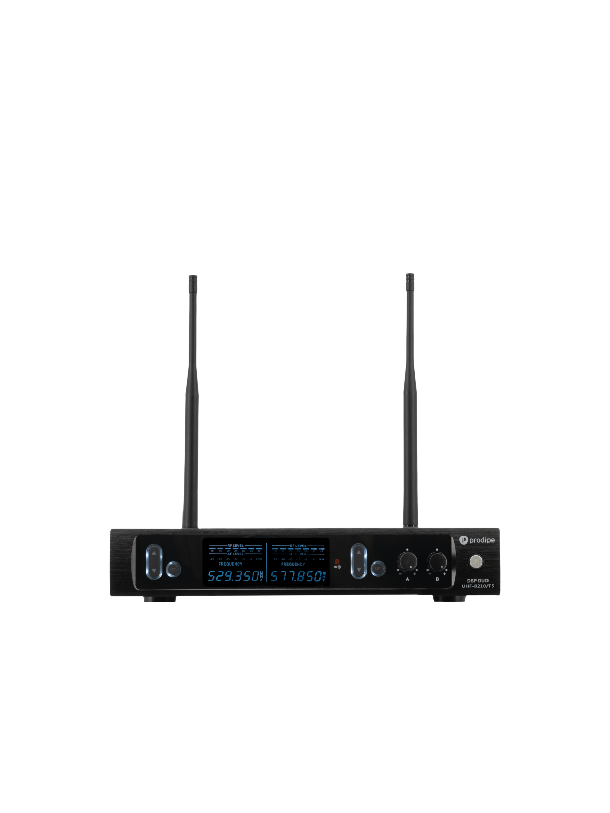 Micro Head Duo Prodipe UHF 100 fréq. DSP Duo UHF-B210 HeadsetQualité Définition FinesseLa technologie numérique au service de la voix...DescriptionNouvelle série de micros UHF en version Headset, équipée de notre nouvelle technologie numérique pour retrouver en UHF toute la qualité et la définition d'un son filaire.Une utilisation parfaite tout en mouvementS'adaptant parfaitement à votre morphologie, confortables et légers, idéals pour une utilisation en mouvement, les micros UHF B210 DSP Headset Duo Prodipe sont équipés d'une cellule de qualité spécialement conçue pour le chant et la voix.Recherche et calage automatique des 2x100 fréquences.Affichage LCD.Appairage par infra-rouge.Connectique mini XLR symétrique sur chaque boitier Bodypack UHF.1 sortie Jack asymétrique + 2 sorties XLR symétriques sur le récepteur.Permet l'utilisation simultanée de 4 systèmes B210 DSP Duo.La qualité professionnelle accessible à tous.Avec la mondialisation et la circulation des savoir-faire, un prix élevé n'est donc plus forcément synonyme de qualité.Ne nous croyez pas sur parole, mais au contraire, faites preuve d'esprit de comparaison... et vous comprendrez pourquoi nous nous engageons pour vous.La "recherche et développement" a été réalisée en France en collaboration active avec l'incontournable ingénieur du son français Ludovic Lanen"Cette nouvelle technologie vous permet de retrouver en UHF la définition du son d'un système filaire. Votre voix peut donc s'exprimer en UHF avec un équilibre du son sans concession pour une sonorité la plus proche de celle d'une connexion filaire.Notre électronique est conçue pour résister aux interférences qui peuvent survenir et vous garantir l'intégrité du signal en toute situation"SPÉCIFICATIONS :Type de transmission : UHFNombre d'appareils max : 4 systèmes UHF Duo simultanésNombre de canaux : 2 x 100Type de modulation : FMBande passante : 553MHz à 578MHz (version F5)655MHz à 680MHz (version = 2021)Distorsion harmonique : Inférieure à 0.1%Portée : 60mConditions extérieures optimalesRapport signal/bruit : Supérieur à 96dBAccessoires fournis : Alimentation secteurUtilisation : Backline (scène)Chant / VoixTRANSMETTEURPuissance : 10mWAlimentation : 2 piles LR6 (AA) de 1.5VEnviron 8h d'autonomie en conditions extérieures optimales(piles non fournies)Poids : 80g (sans pile)RéCEPTEURSensibilité : Inférieure à -94dBmPoids : 780gRéponse en fréquence : 30Hz à 20kHzSorties : 2 x XLR (symétrique)Jack 6.35mm (asymétrique)MICROType : Condensateur à électretDirectivité : CardioïdeImpédance : 2.2kO (à 1kHz)Sensibilité : -45dB ±3dB (0dB pour 1V/Pa à 1kHz)Réponse en fréquence : 100Hz à 12.5kHz(micro serre-tête)Longueur du câble : 1m